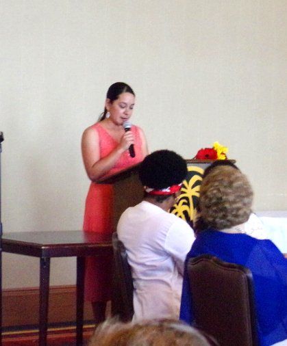 Pauline Barylski speaking on the behalf of Sandra Sanchez, who couldn't make it. Sandra is one of Pauline's students.